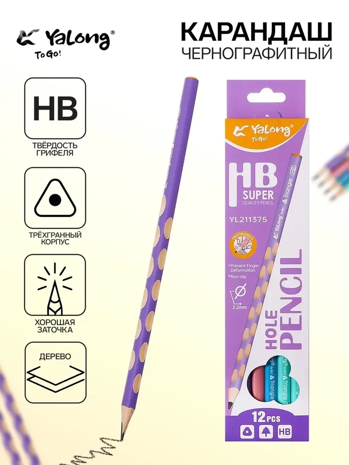 Карандаш чернографитный НВ , Пастель, корпус треугольный МИКС