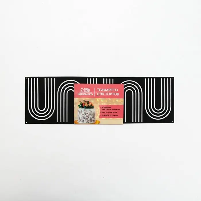 На боковых трафаретах сделаны специальные отверстия, чтобы закрепить трафарет на изделии и не придерживать рукой, украшать Ваше кондитерское либо любое другое изделие.