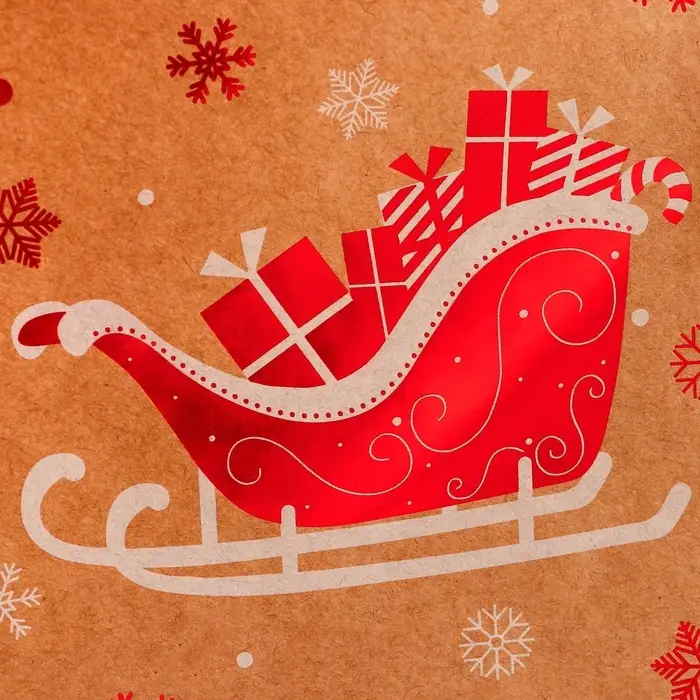 Пакет крафт с тиснением, круглая ручка, «Новогдние сани» 21×27×11 см, 120 г