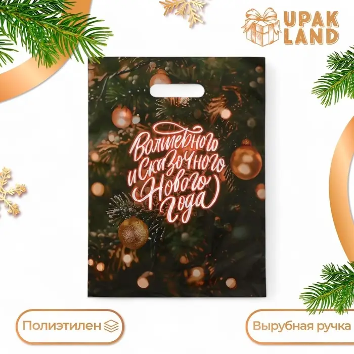 Пакет «Волшебного и сказачного нового года», полиэтиленовый с вырубной ручкой, 30×40 см, 5