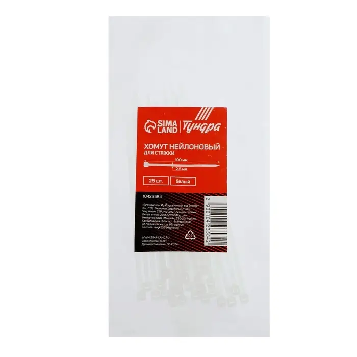 Хомут нейлоновый для стяжки, ТУНДРА, 2.5×100 мм, белый, 25 шт.