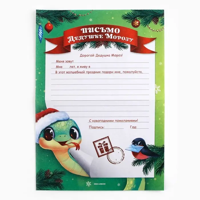 Письмо Деду Морозу, конверт А5, с раскраской «Новый год: Змейка с мандарином»
