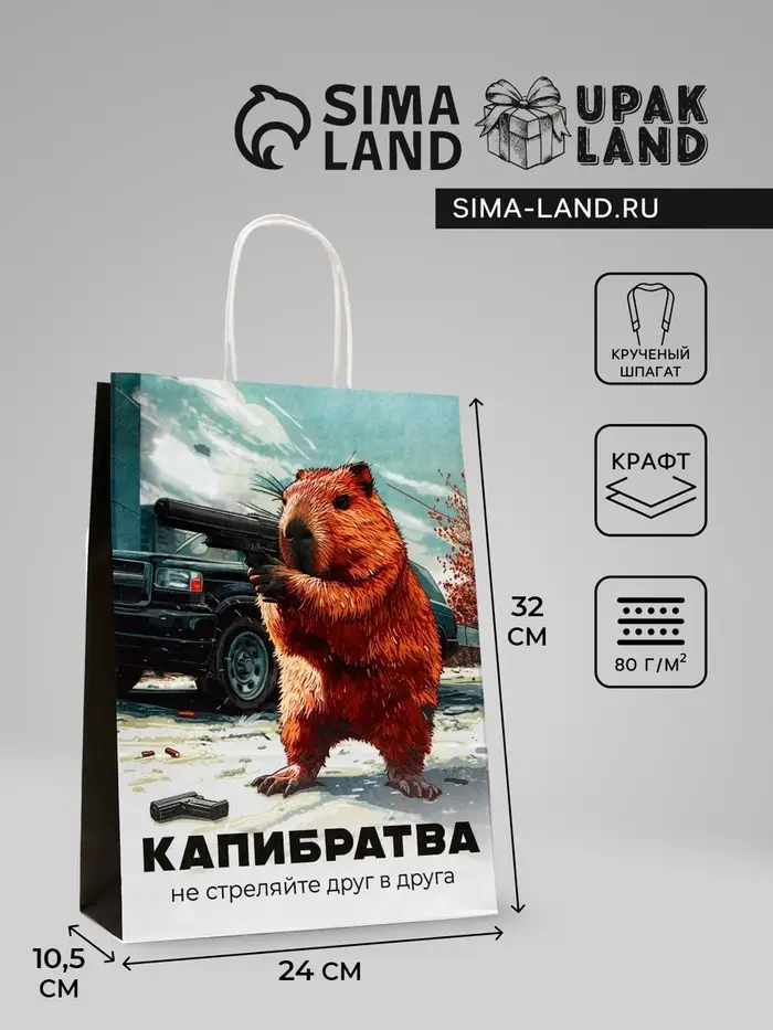Пакет подарочный бумажный, «Капибратва», 24×10.5×32 см