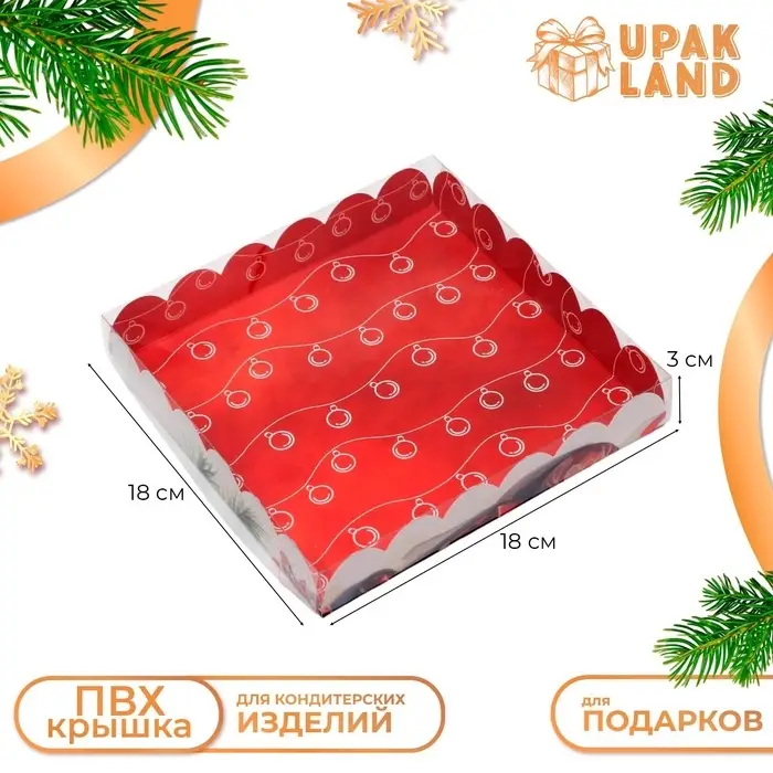 Коробка для печенья, кондитерская упаковка с PVC крышкой, «8 марта», 21 х 21 х 3 см