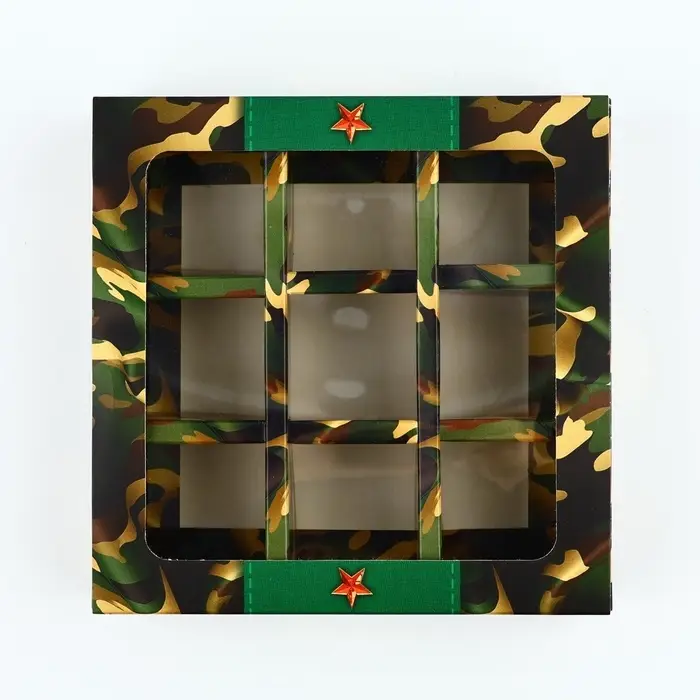 Коробка под 9 конфет с ячейками «23 февраля» 14.5 х 14.5 х 3.5 см