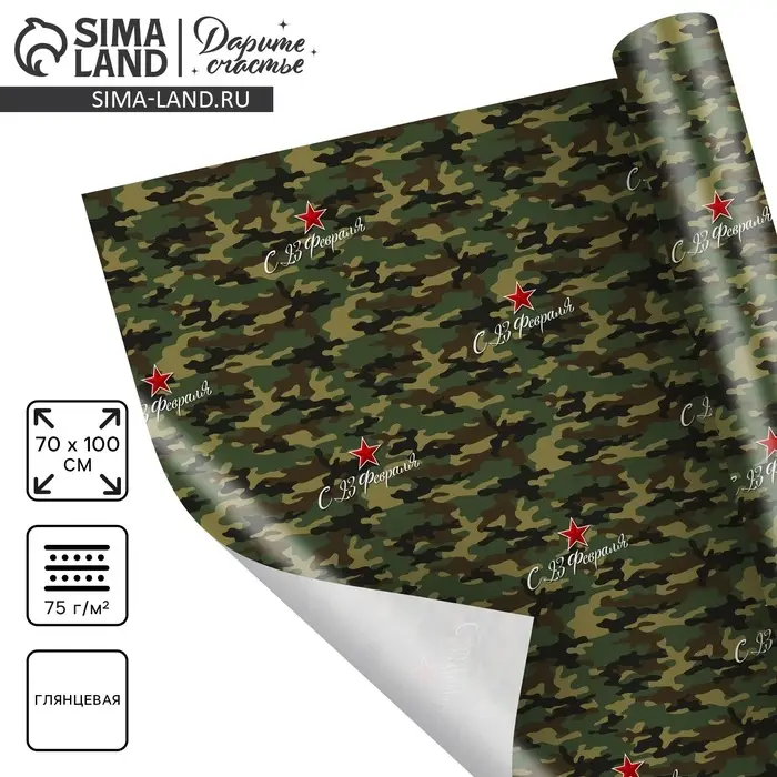 Бумага упаковочная глянцевая «С 23 февраля», 70 х 100 см