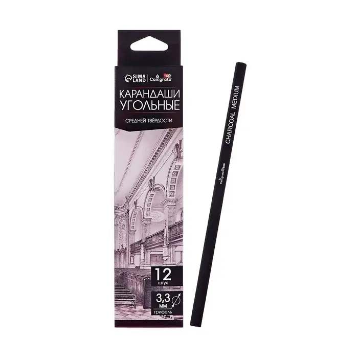 Уголь в карандаше, грифель d-3.3 мм, средний