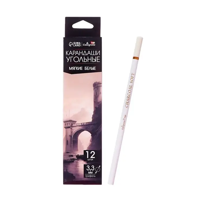Уголь в карандаше, грифель d-3.3 мм, белый, мягкий