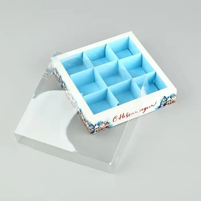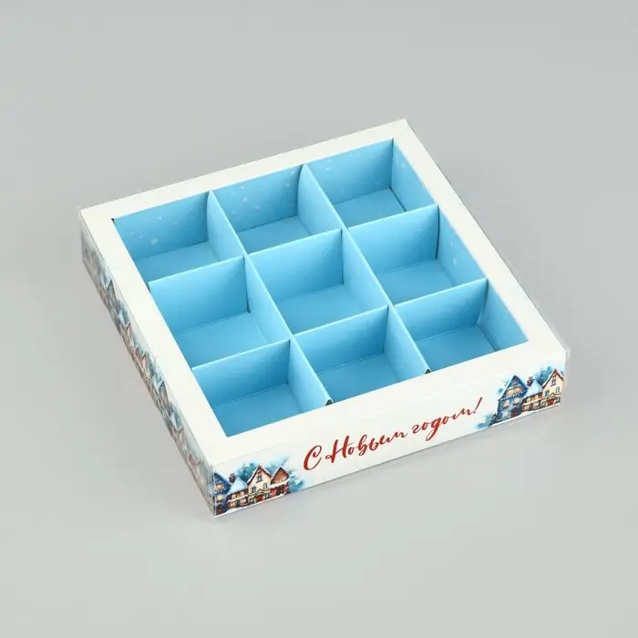 Коробка под 9 конфет с ячейками «Новогодний городок», 14.5 х 14.5 х 3 см
