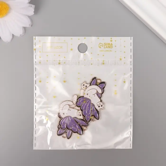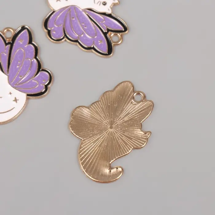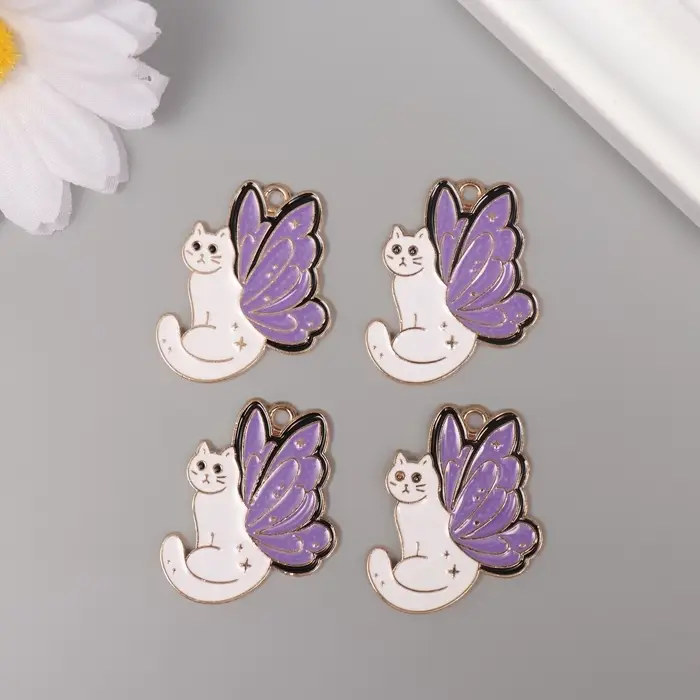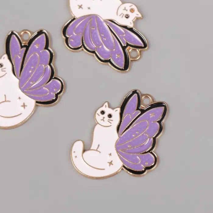 Декор для творчества металл, эмаль "Котик с крыльями бабочки" бело-фиолетовый 2,8х2,4 см