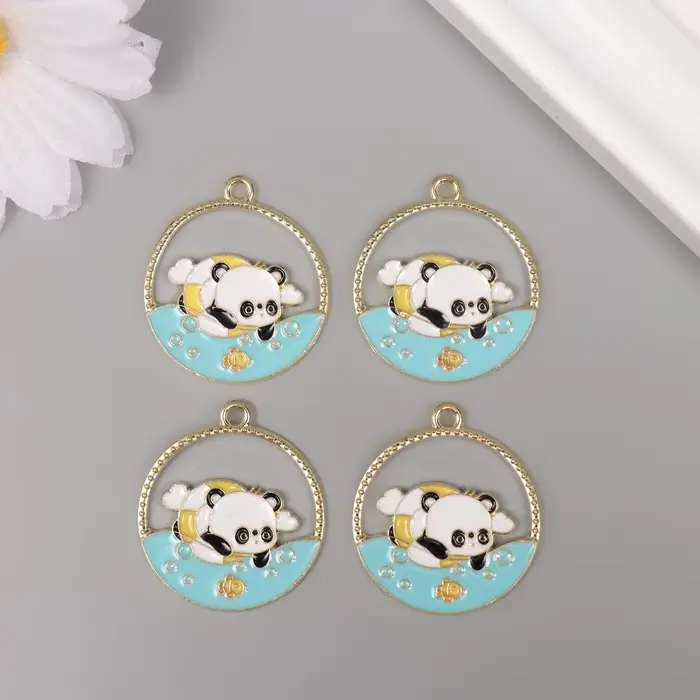 Декор для творчества металл, эмаль "Пандочка в море" 2,8х2,5 см
