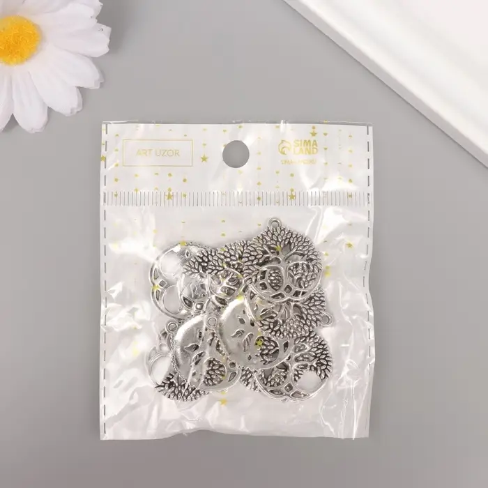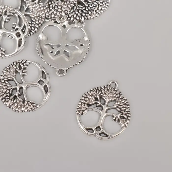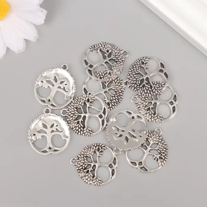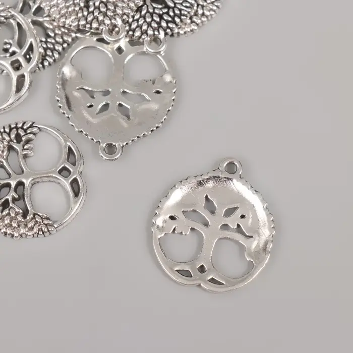Металлический элемент, декоративная подвеска «Арт Узор. Дерево жизни», серебро, 2.6×2.3 см