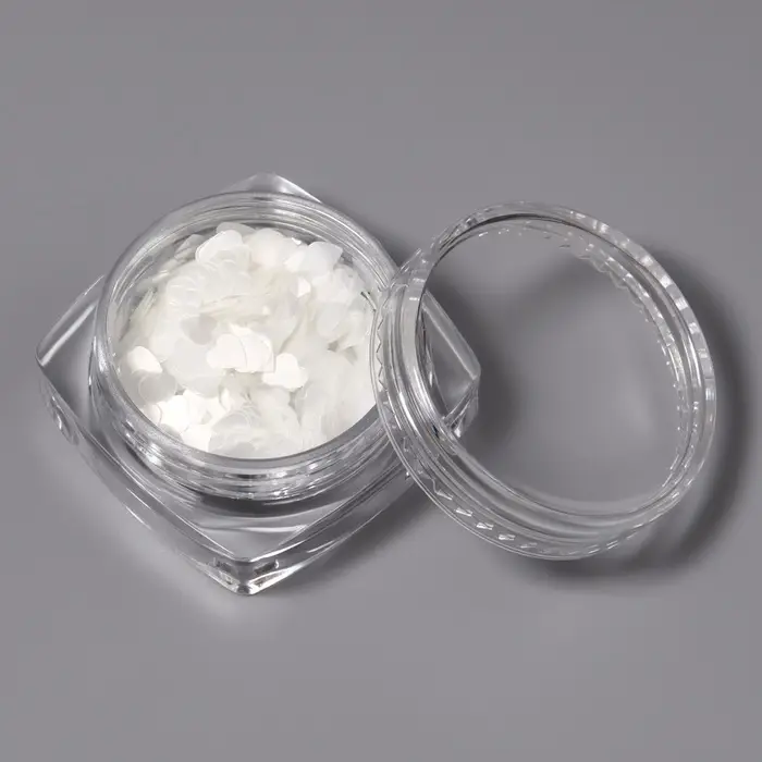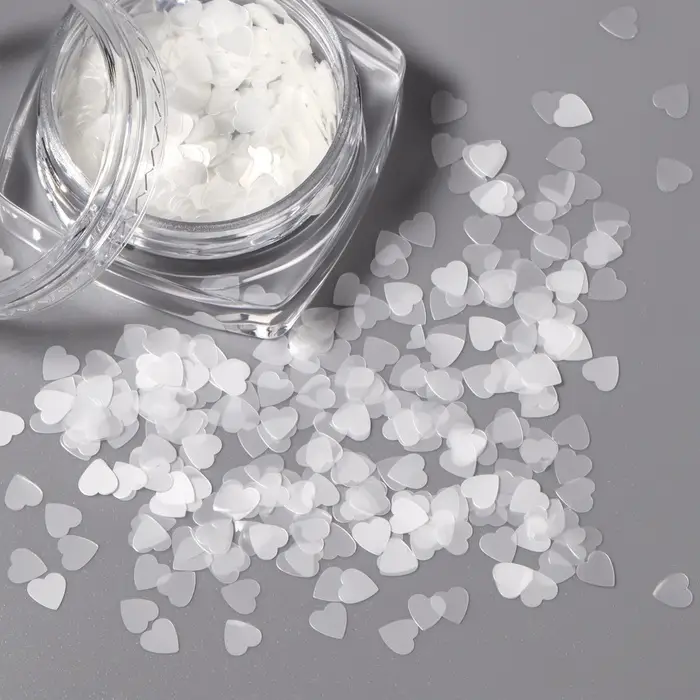 Белые блестящие пайетки в форме сердечек станут ярким акцентом на ваших ногтях. Их можно использовать как для создания нежного образа, так и для добавления интересных деталей к любому дизайну.