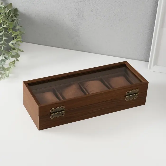 Шкатулка дерево под часы 4 деления "Стиль" коричневая 12х31х7,5 см