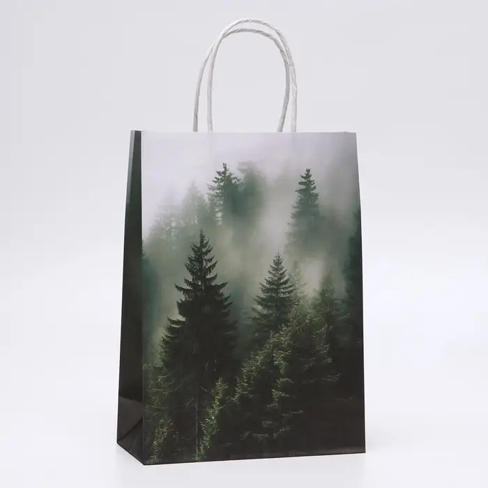 Пакет подарочный крафтовый «Туманный лес» 18×8×25 см, 120 г/м²