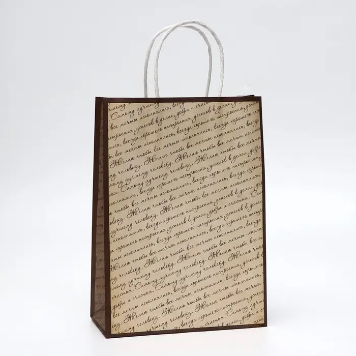 Пакет подарочный крафтовый «Рукопись» 18×8×25 см, 120 г/м²
