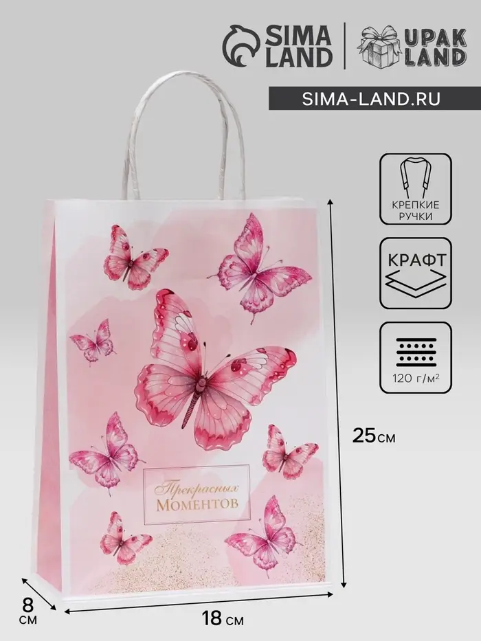 Пакет подарочный крафтовый «Прекрасных моментов» 18×8×25 см, 120 г/м²