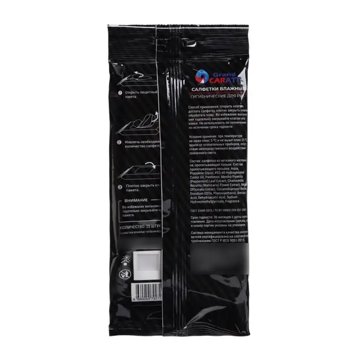 - Салфетки Grand Caratt обладают мягкой текстурой и специальным составом, который бережно удаляет грязь, пыль, бактерии и другие загрязнения с кожи рук, не вызывая сухости или раздражения. Они освежают кожу, придавая ей приятный аромат и оставляя ощущение чистоты и комфорта.