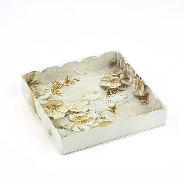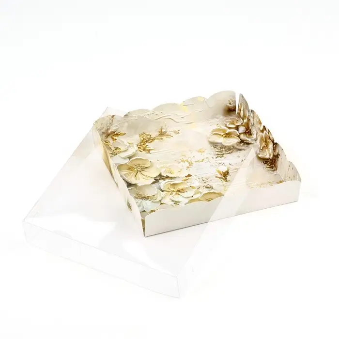 Коробка для кондитерских изделий с пластиковой крышкой «Золото», 15 х 15 х 3 см