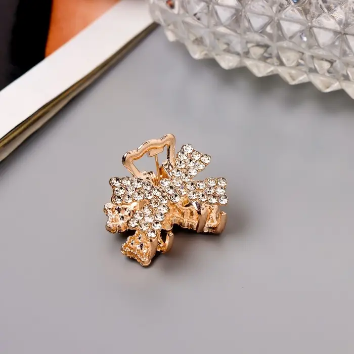 Добавьте блеска и элегантности вашему образу! Золотой зажим для волос «Одри» с бантом, 2 см – стильный аксессуар, который добавит изысканности в ваш повседневный или праздничный образ. Изготовлен из металла и декорирован стеклом, зажим станет надёжным помощником в создании причёсок.