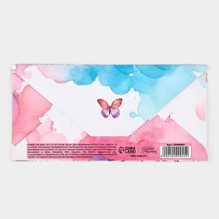 Конверт для денег на акварельном картоне «Подарок», 16.5×8 см