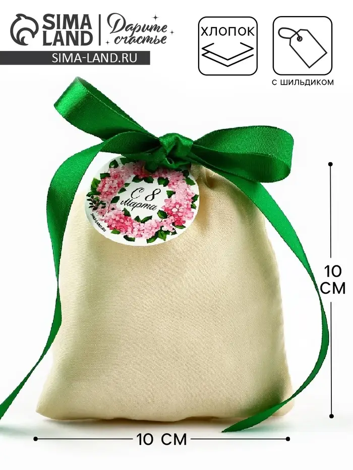 Мешочек подарочный из хлопка «С 8 марта», 10 х 12 см +/- 1.5 см