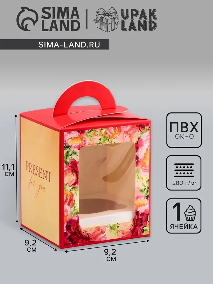 Коробка для 1 капкейка, «Презент», 9.2×9.2×11.1 см