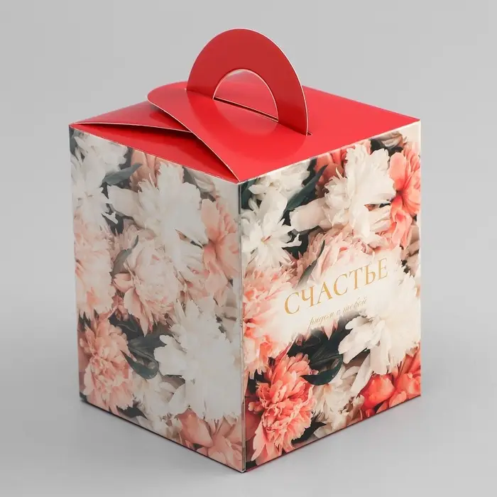 Коробка оформлена в пастельных тонах с нежным цветочным узором, отражающим весеннюю свежесть и романтическое настроение. Ее легко открыть и приятно держать в руках, что делает каждое распаковку настоящим событием.