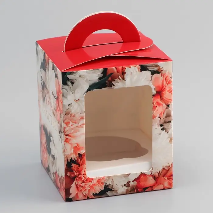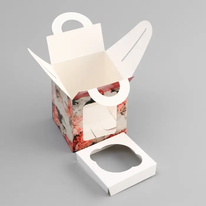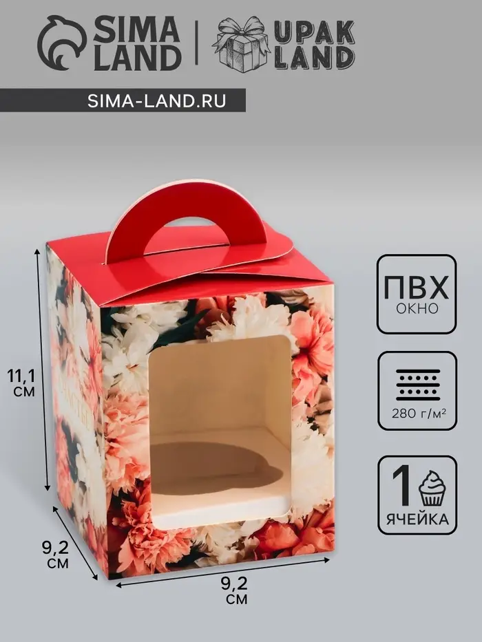 Коробка для 1 капкейка, «Цветочки», 9.2×9.2×11.1 см