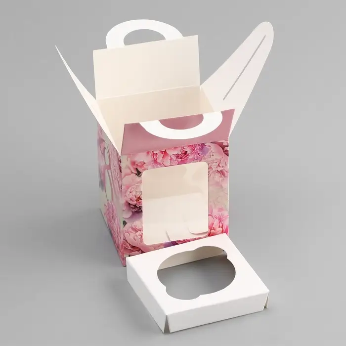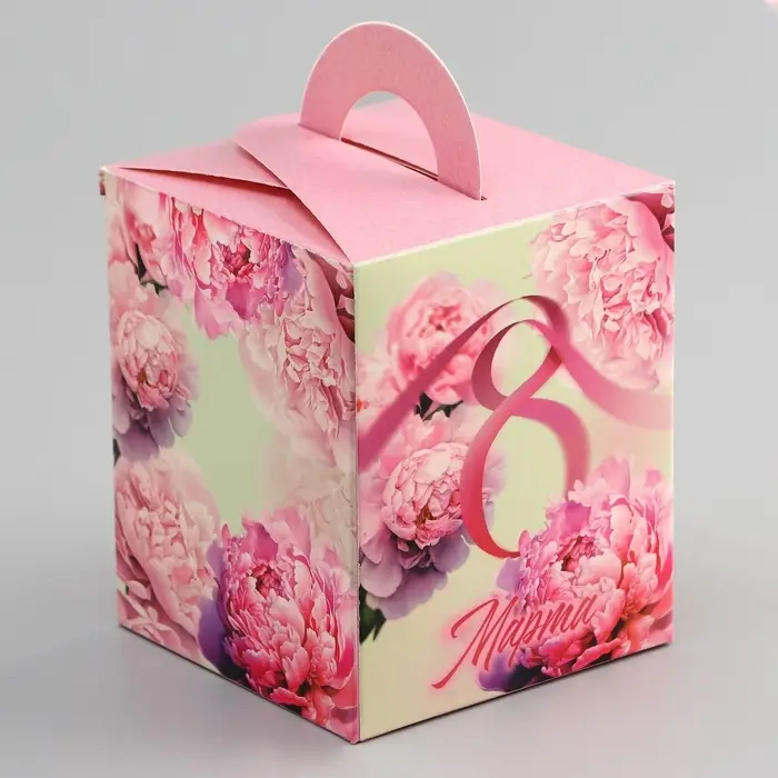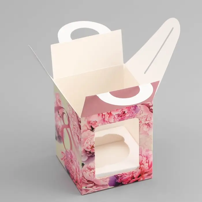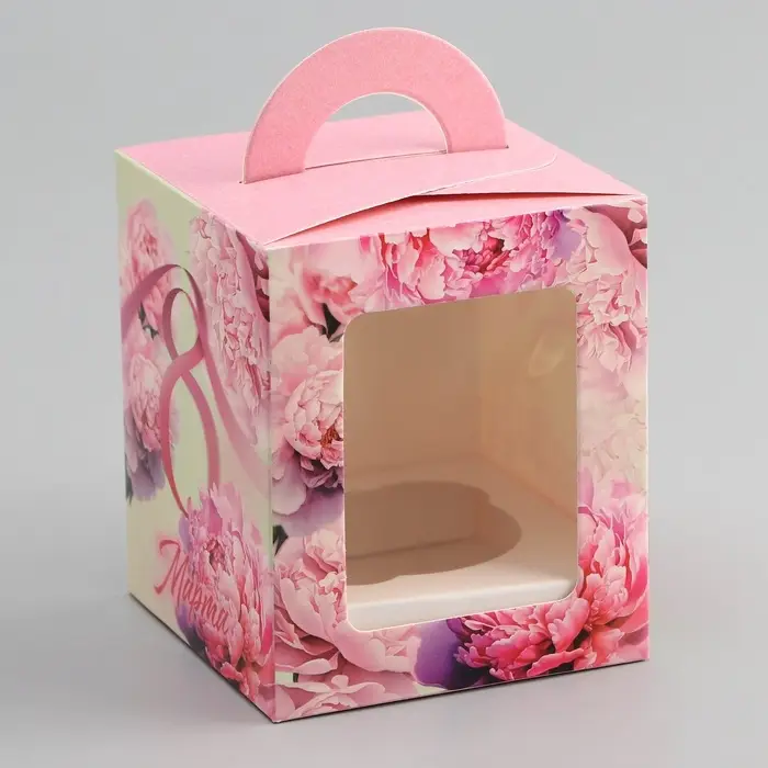 Коробка для 1 капкейка, «8 марта», 9.2×9.2×11.1 см