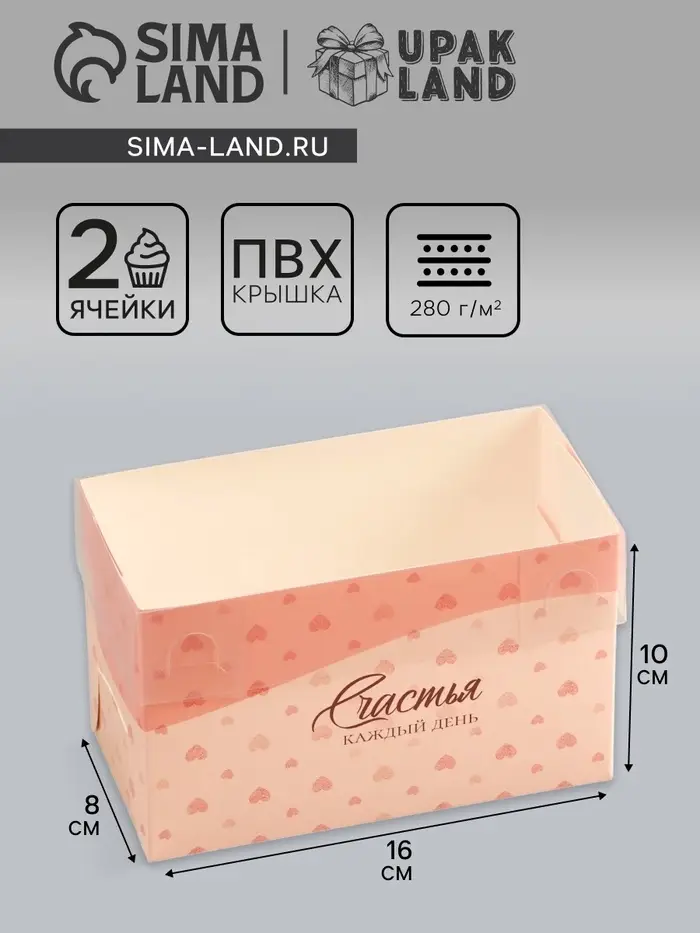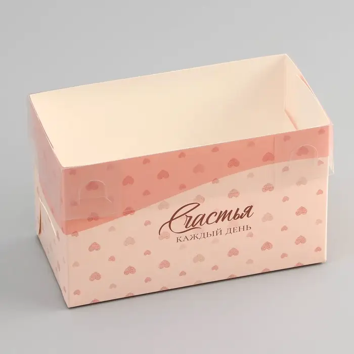 Коробка для 2 капкейка с прозрачной крышкой, «Сердечки», 16×8×10 см