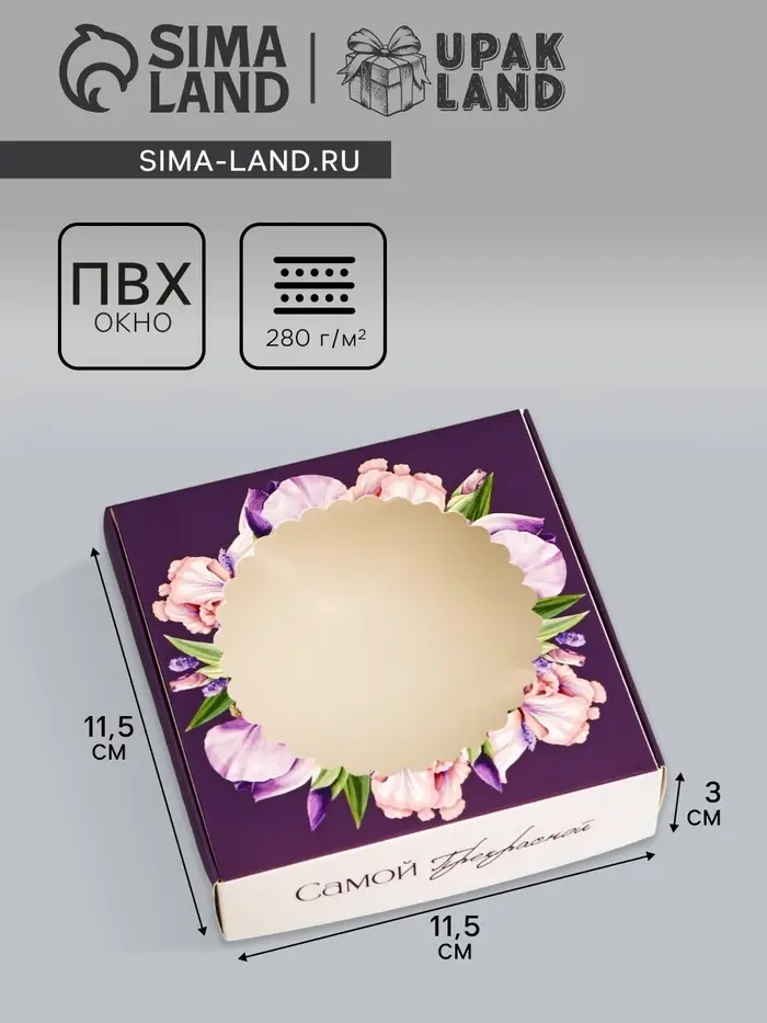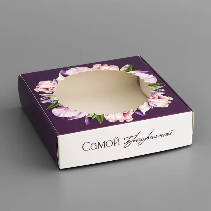 Коробка подарочная сборная с окном, упаковка, «Самой прекрасной», 11.5×11.5×3 см