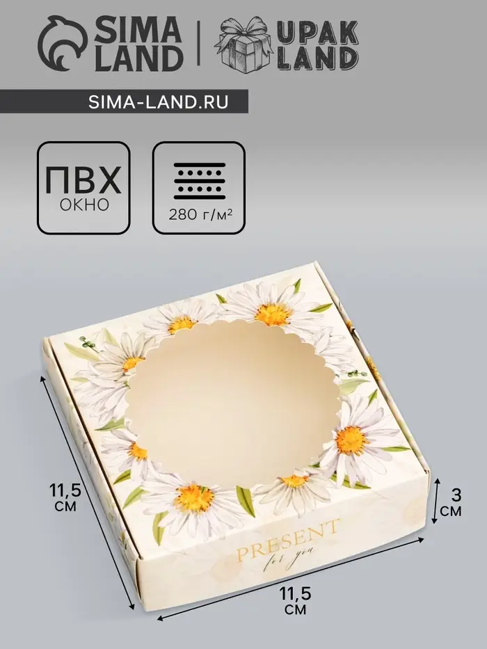 Коробка подарочная сборная с окном, упаковка, «Презент», 11.5×11.5×3 см