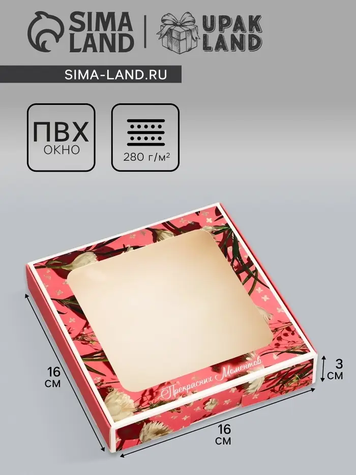 Коробка подарочная сборная с окном, упаковка, «Прекрасных моментов», 16×16×3 см