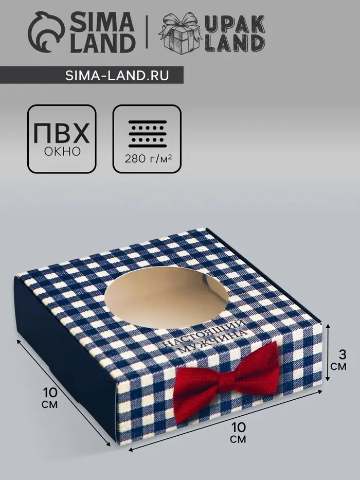 Коробка подарочная сборная с окном, упаковка, «Настоящему мужчине», 10×10×3 см