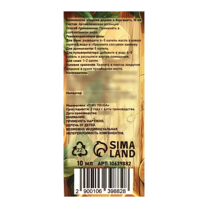 Аромамасло Чёрное дерево и Бергамот 10 мл