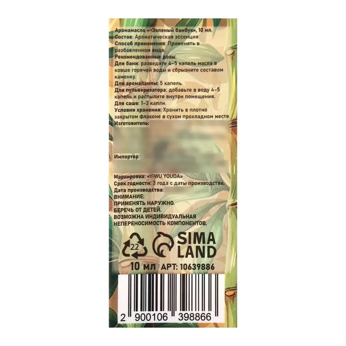 Аромамасло Зеленый бамбук 10 мл