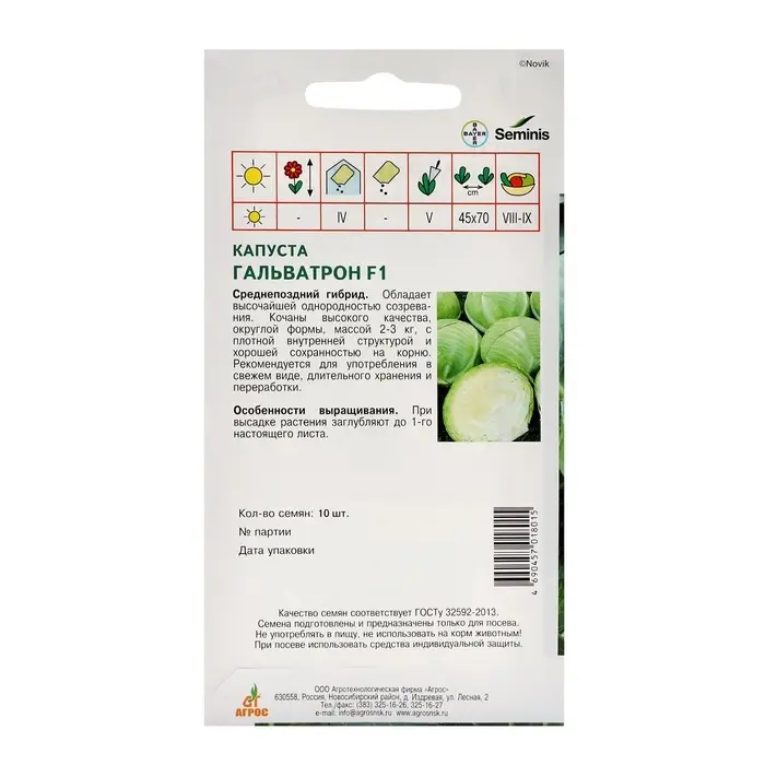Получите от своих посадок максимум — белокочанная капуста «Гальватрон» F1 станет вашей надежной помощницей в кулинарных экспериментах. Попробуйте эти семена и убедитесь в их качестве.