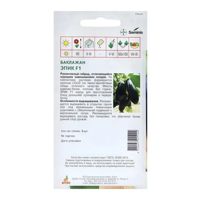- Баклажаны «Эпик F1» сохраняют свою жизнеспособность до 3 лет благодаря качественной селекции.