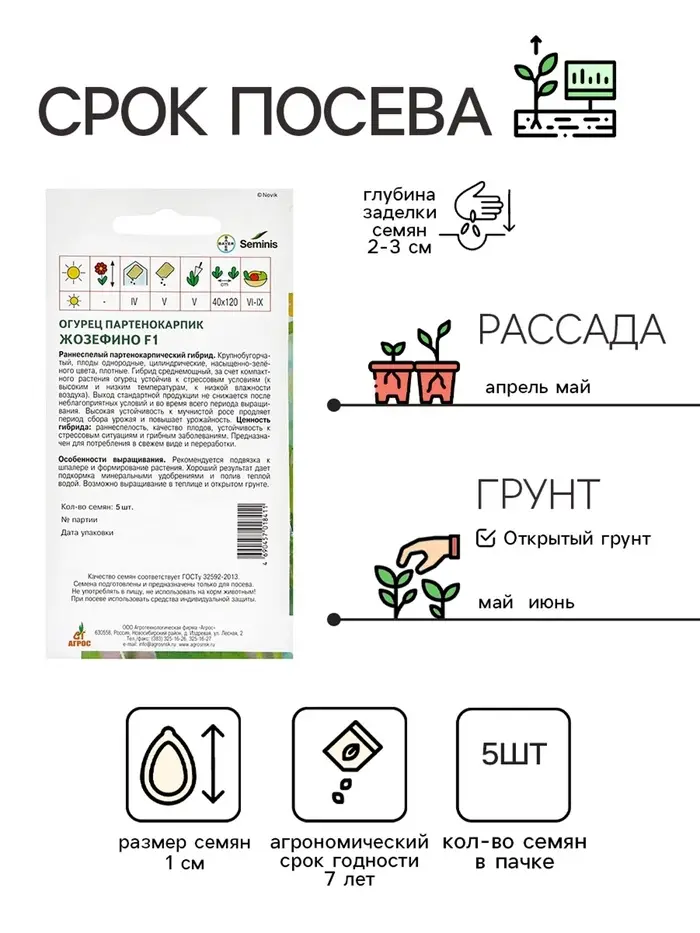 - Хранение семян: агрономический срок годности составляет 7 лет, что позволяет долго сохранять семена без потери их качества.