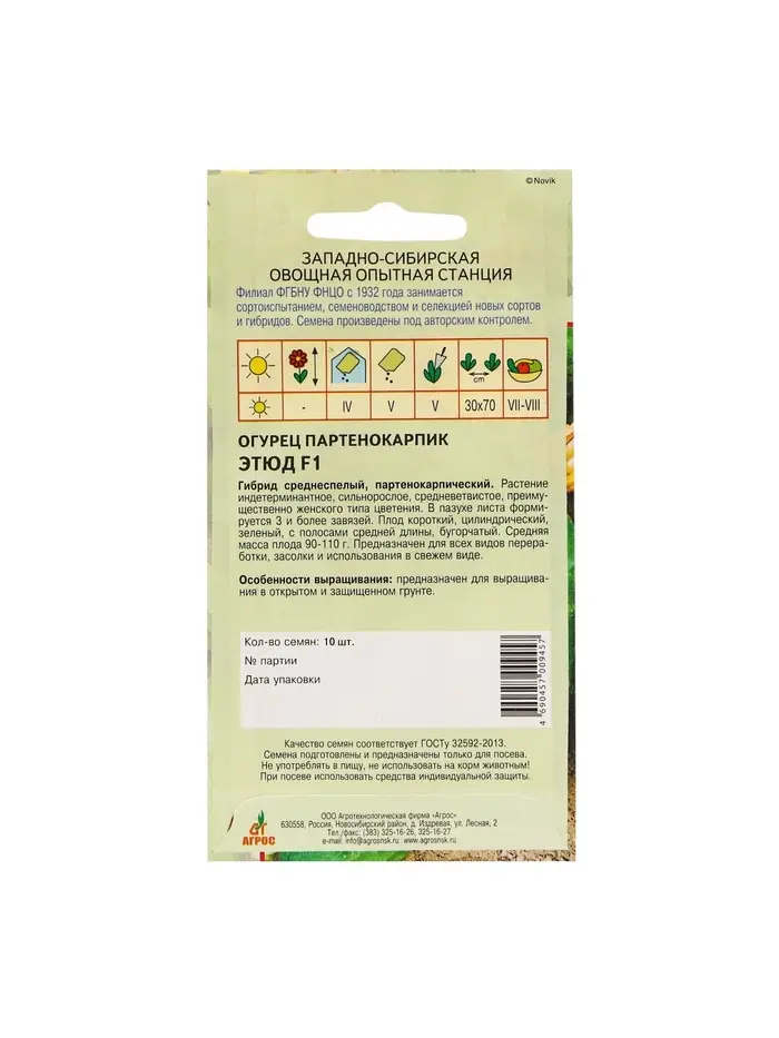 Семена Огурец"Этюд"F1 10шт* КС