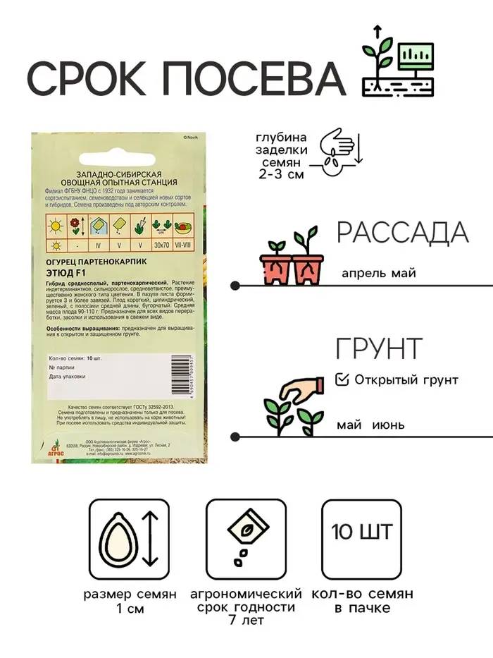 Для оптимальных результатов посев на рассаду рекомендуется в ноябре, марте или мае. Высаживайте в апреле или мае для открытого грунта. Эти семена дают плоды, которые идеально подходят для консервирования или свежего употребления.