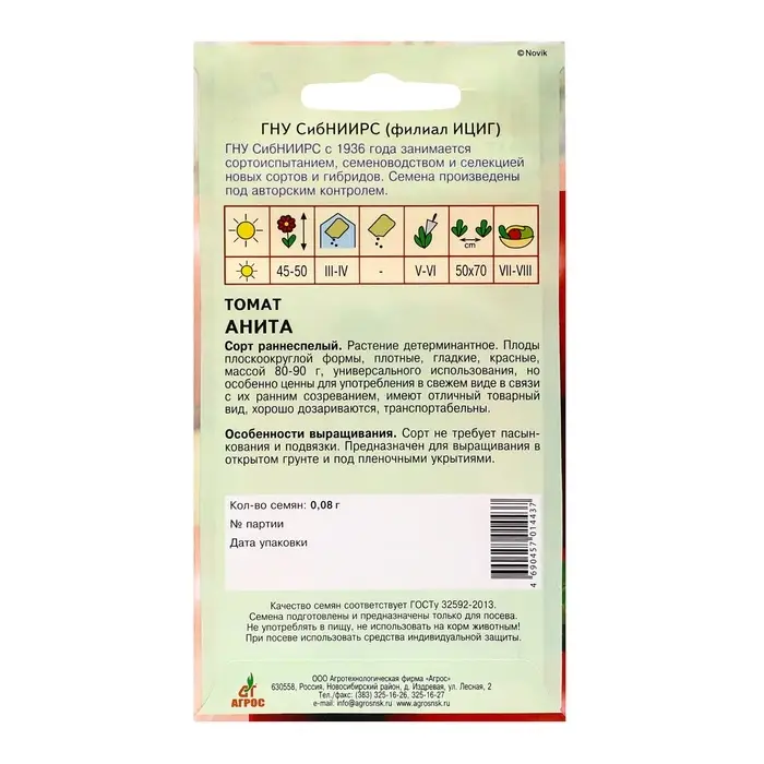 - Семена сохраняют агрономическую пригодность в течение четырех лет.