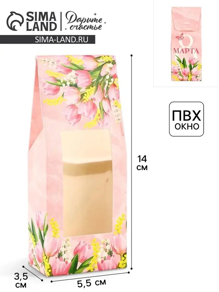 Коробка складная «8 Марта», 14 х 5.5 х 3.5 см