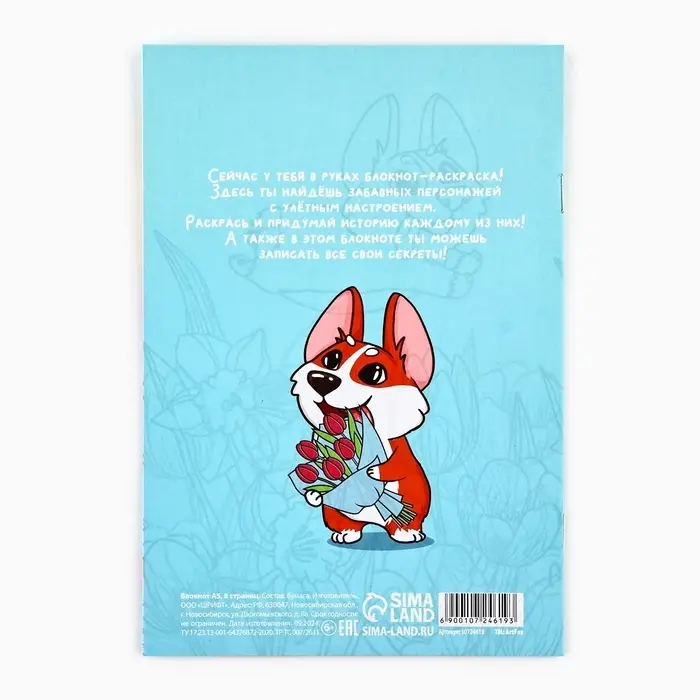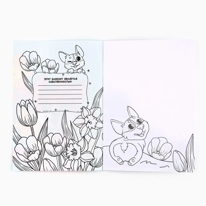 Блокнот раскраска А5, 8 страниц «Корги. 8 марта»