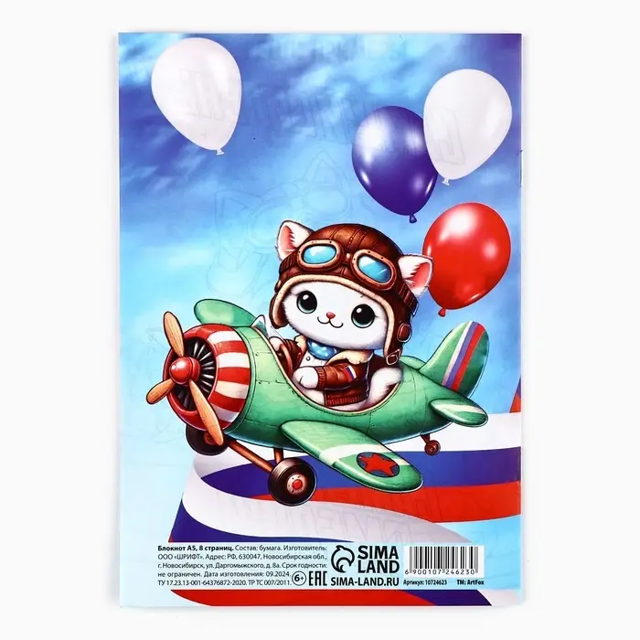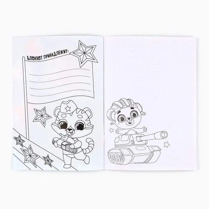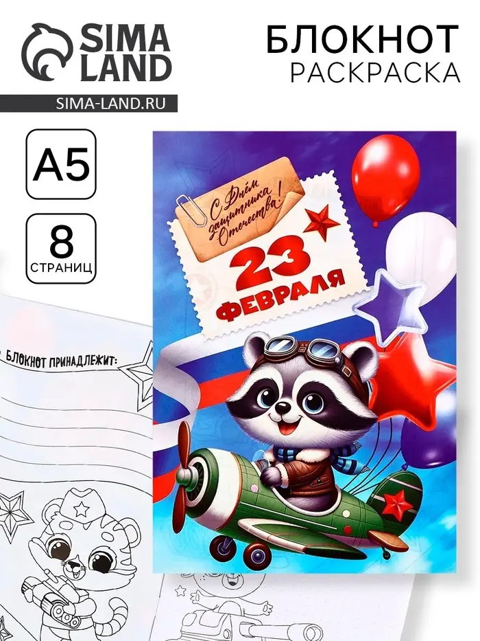Блокнот раскраска А5, 8 страниц «Енотик. 23 февраля»