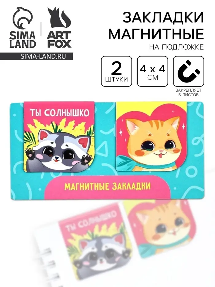 Магнитные закладки 2 шт., 4×4 см, на подложке «Мечтай читай люби»