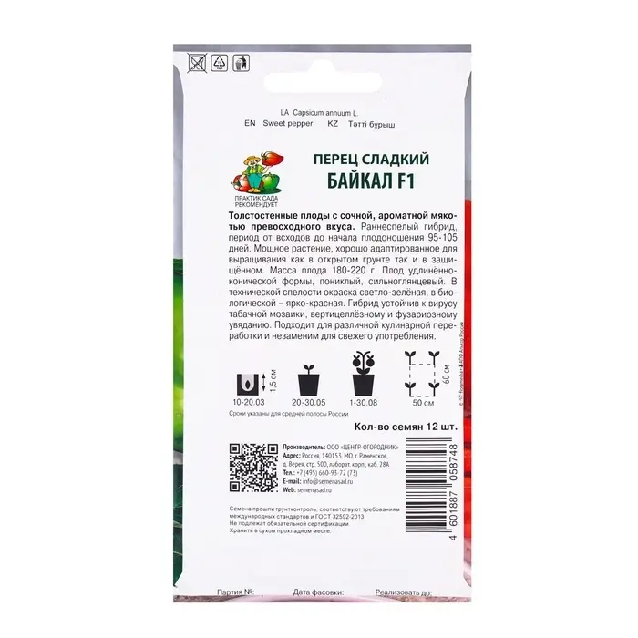 Семена сладкого перца сорта Байкал F1 — это возможность вырастить качественные и вкусные плоды у себя на участке. Этот гибрид перца порадует вас обильным урожаем и устойчивостью к неблагоприятным условиям. Подходит для выращивания как новичкам, так и опытным садоводам.