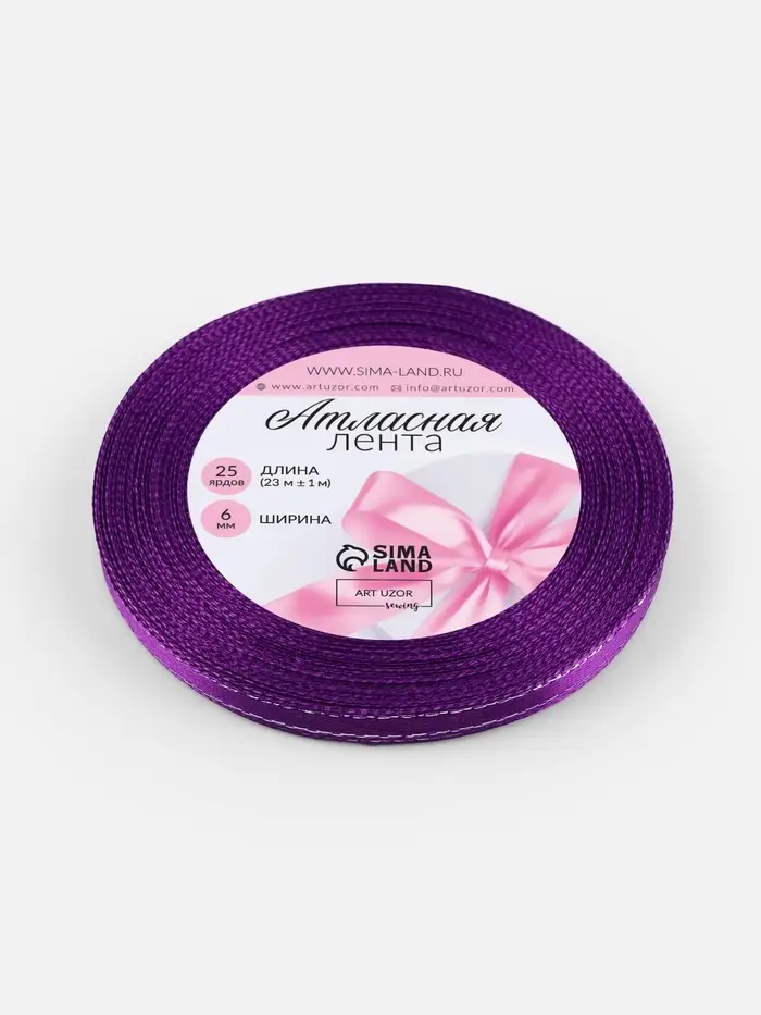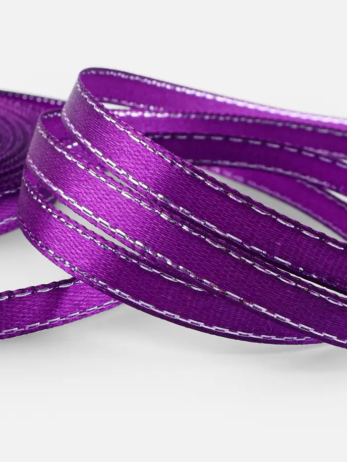 Лента атласная, с серебряным люрексом, 6 мм, 23±1 м, фиолетовая №35