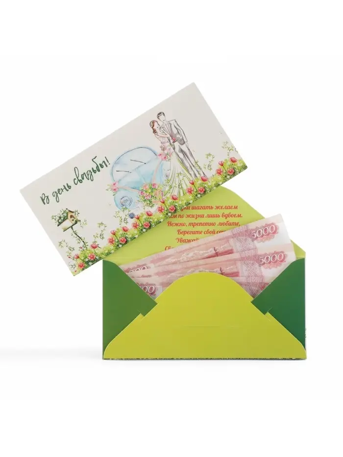 Конверт для денег «В День Свадьбы!», глиттер, 8×16.5 см